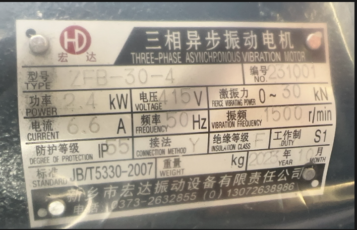 您好晉經(jīng)理:您在貴公司訂購的ZFB-30-4振動電機(倉壁振動器)電壓415V 功率2.4KW數(shù)量8臺已通過安能物流發(fā)往目的地.預(yù)計3天后到達,請保持手機暢通,注意查收。(使用前請詳細查看振動電機使用維護說明書)。