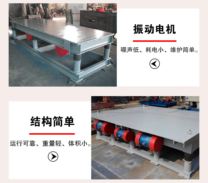 振實(shí)臺(tái)在使用過(guò)程中,可以通過(guò)調(diào)節(jié)振動(dòng)電機(jī)激振力大小、來(lái)使平臺(tái)上物料實(shí)現(xiàn)理想的形式。振動(dòng)電機(jī)為激振源,噪聲低、耗電小、維護(hù)簡(jiǎn)單。ZDP振實(shí)臺(tái)結(jié)構(gòu)簡(jiǎn)單。運(yùn)行可靠、重量輕、體積小、安裝簡(jiǎn)便。